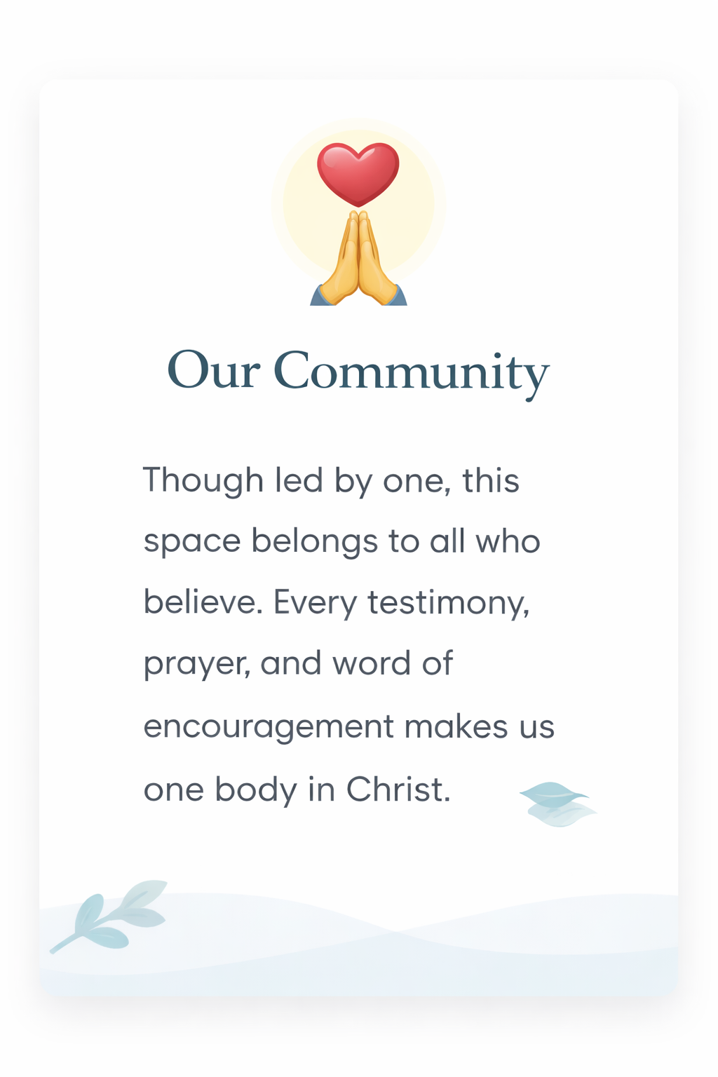 Here, we come together as one body in Christ—to read God’s Word, support one another in prayer, and be reminded that we are never alone on this journey of faith.