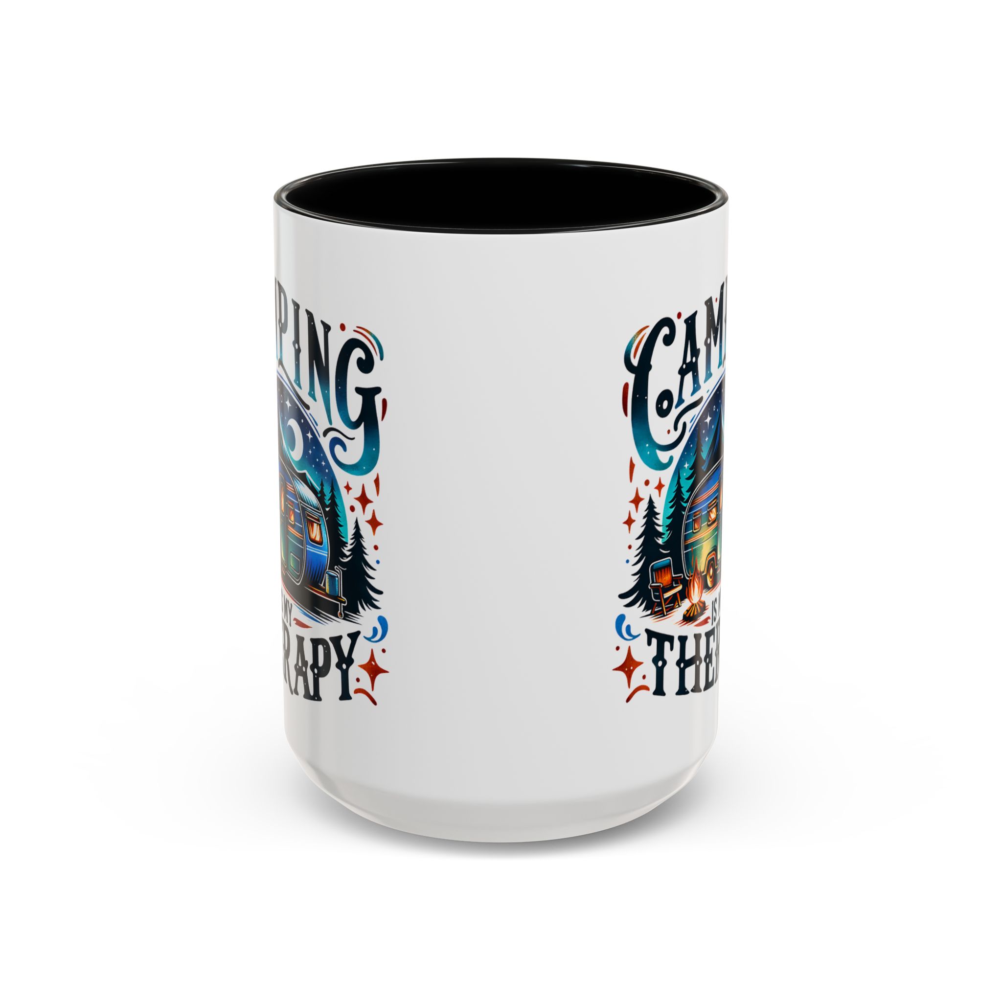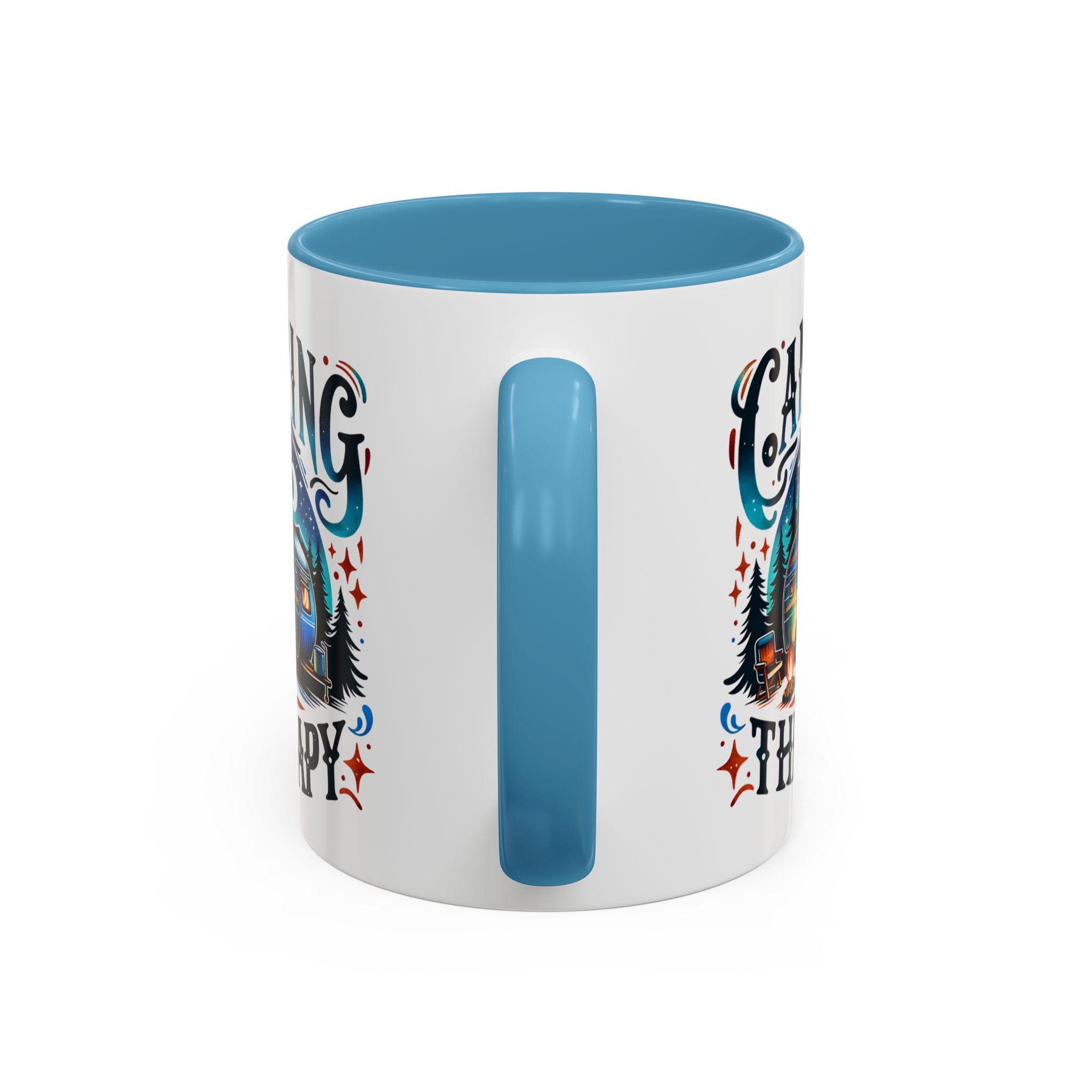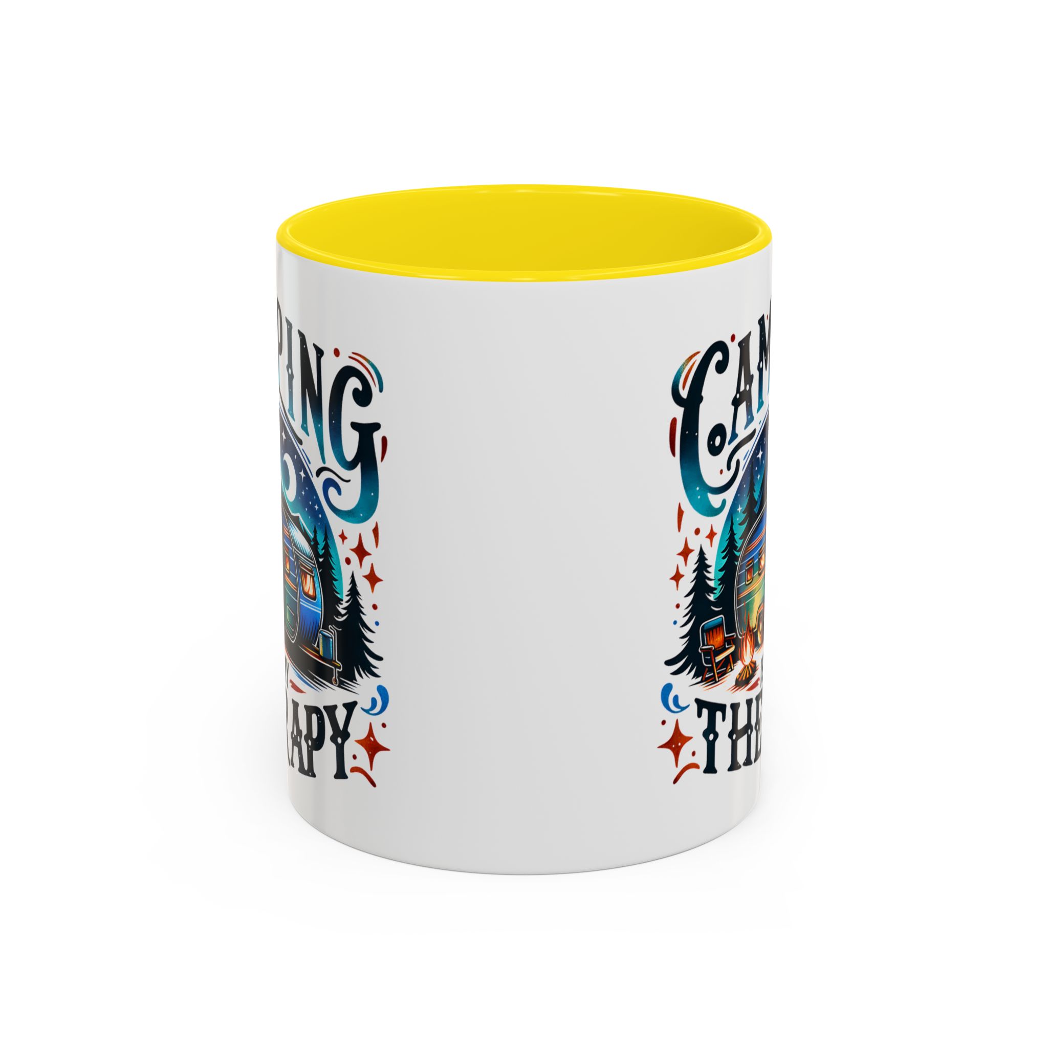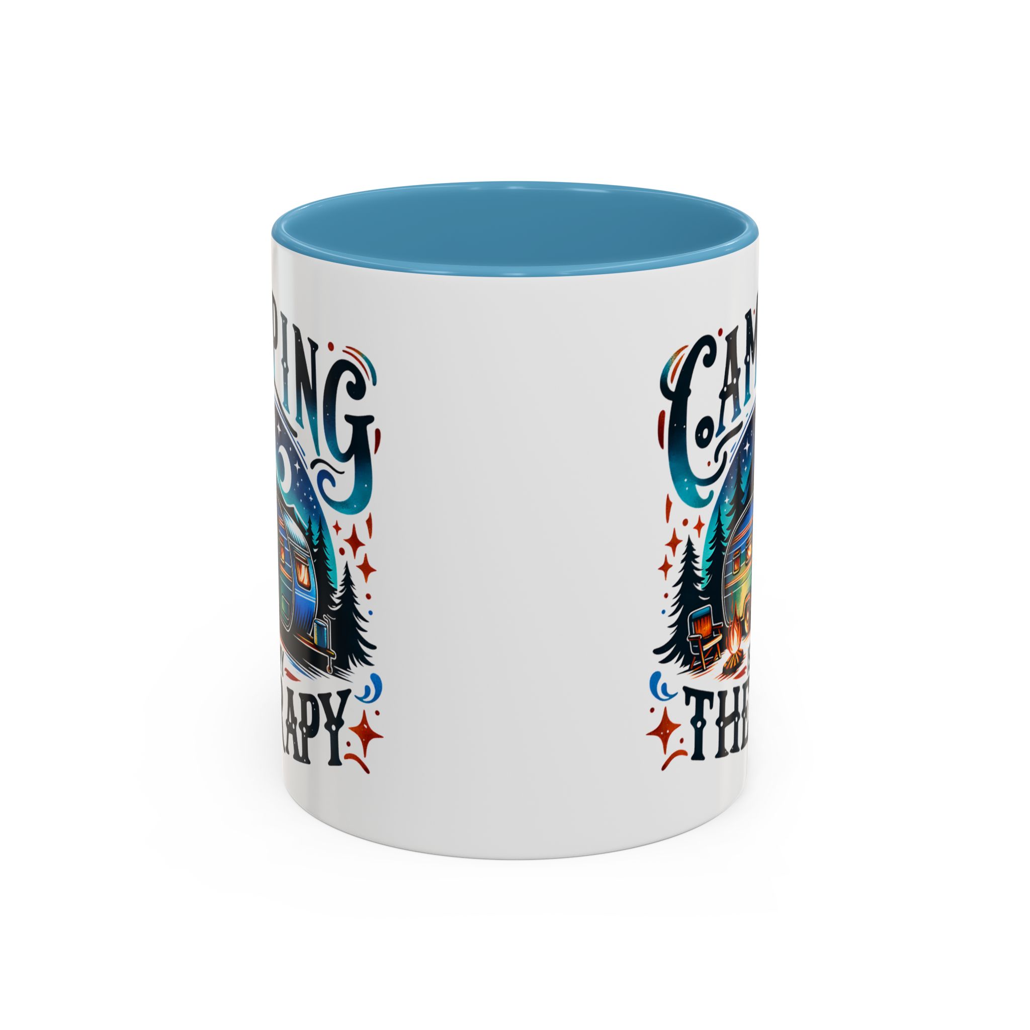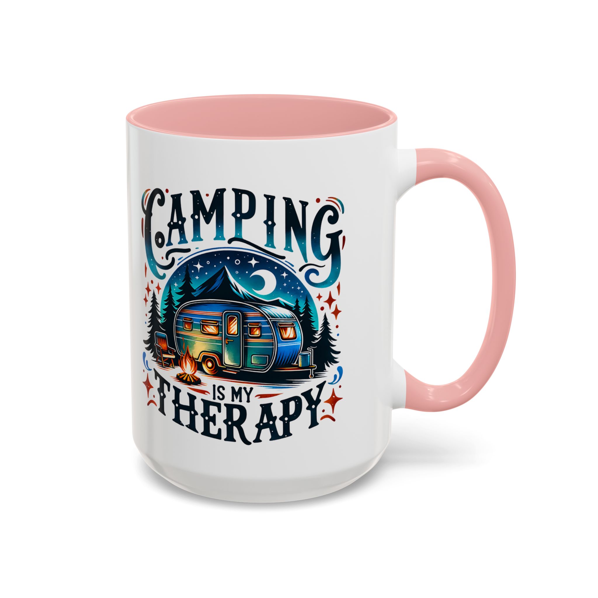 This ceramic accent mug brings a little campsite calm to every sip. The bright, detailed illustration — a glowing camper beneath a starlit sky with the words “Camping is my therapy” — feels like a warm evening around the fire. Smooth glossy white ceramic contrasts with the colored handle and interior, making the artwork pop. It’s sized for morning coffee or a long, slow tea break and stands up to daily use: microwave and dishwasher safe, lead- and BPA-free. Give someone (or yourself) a quiet reminder to slow down and breathe between trips and errands.
