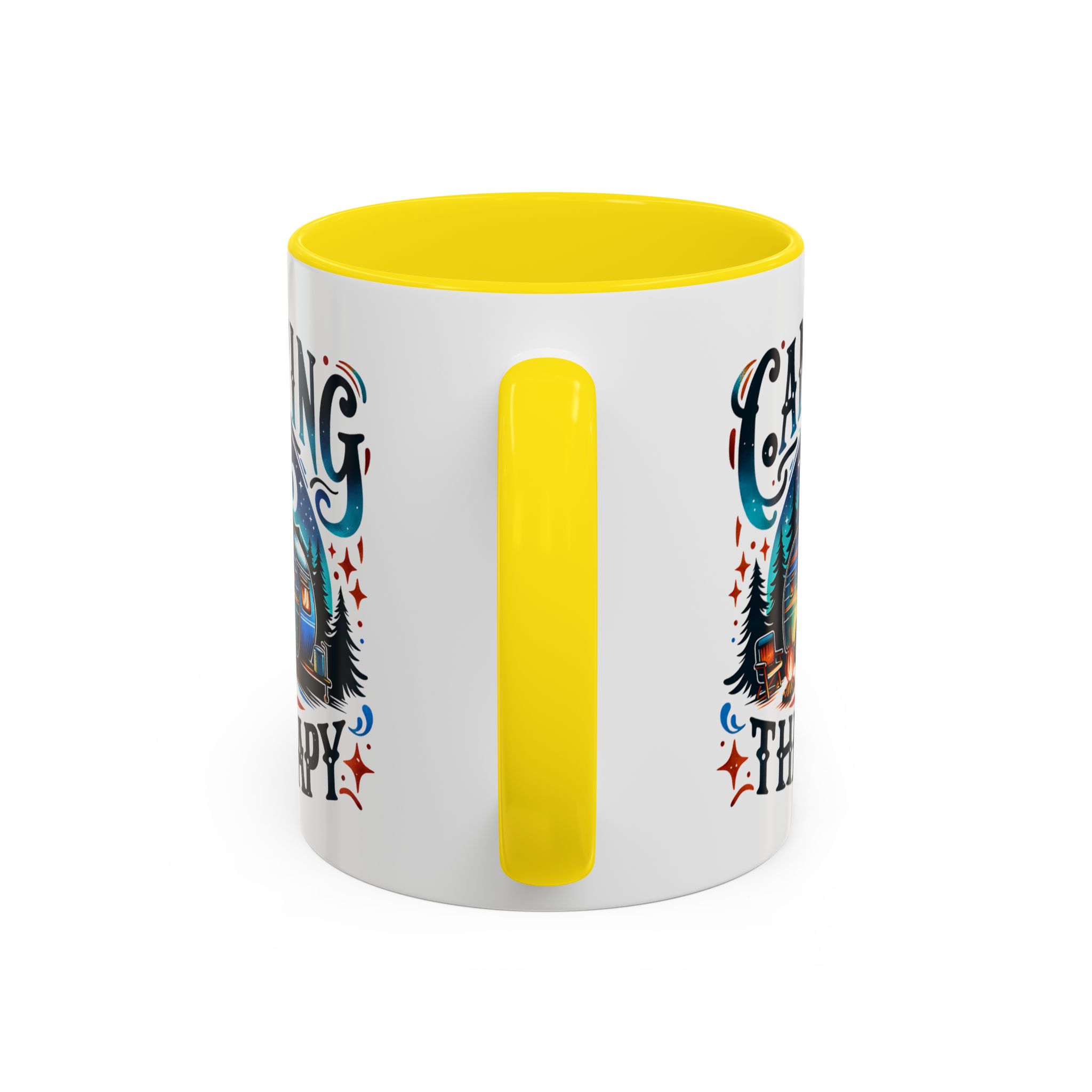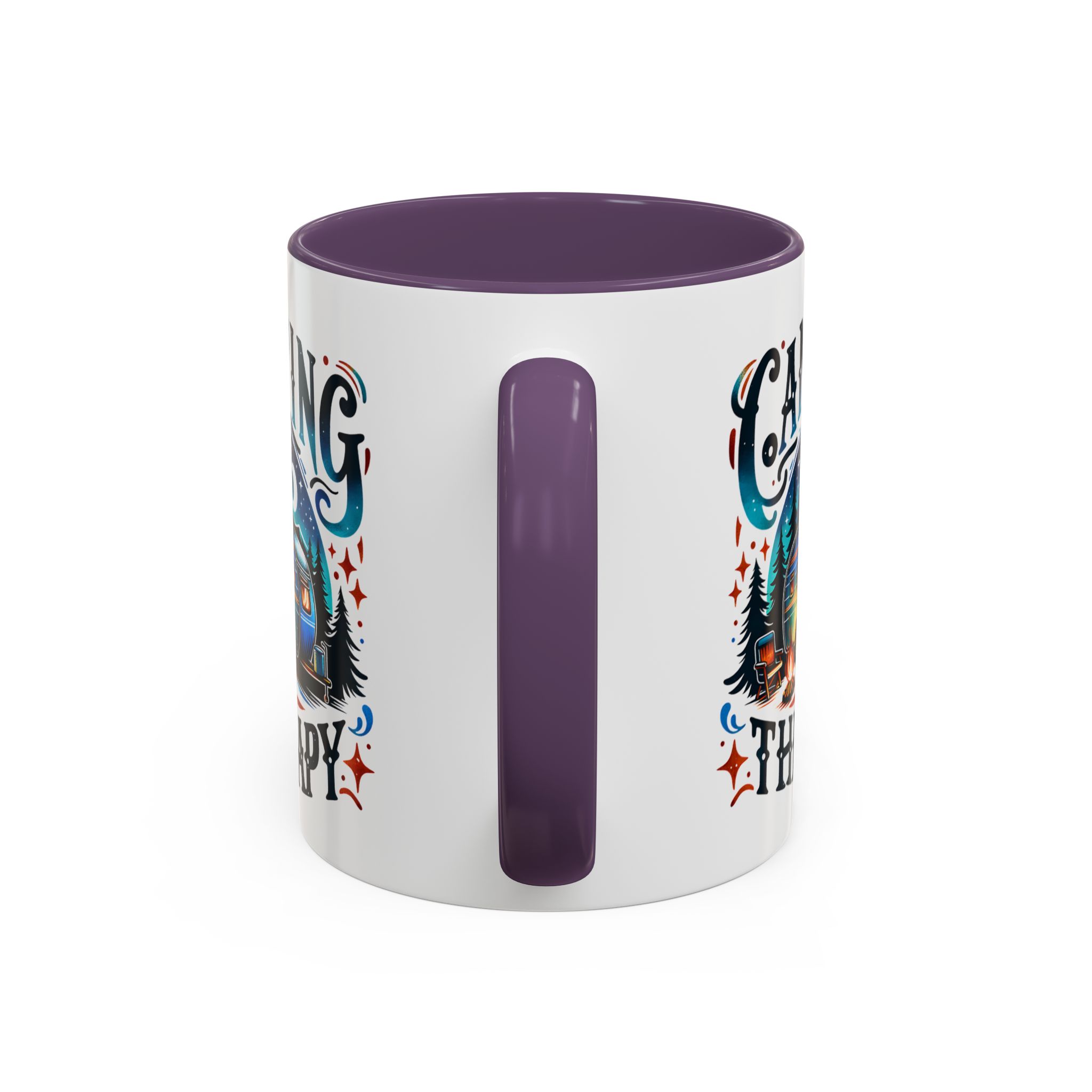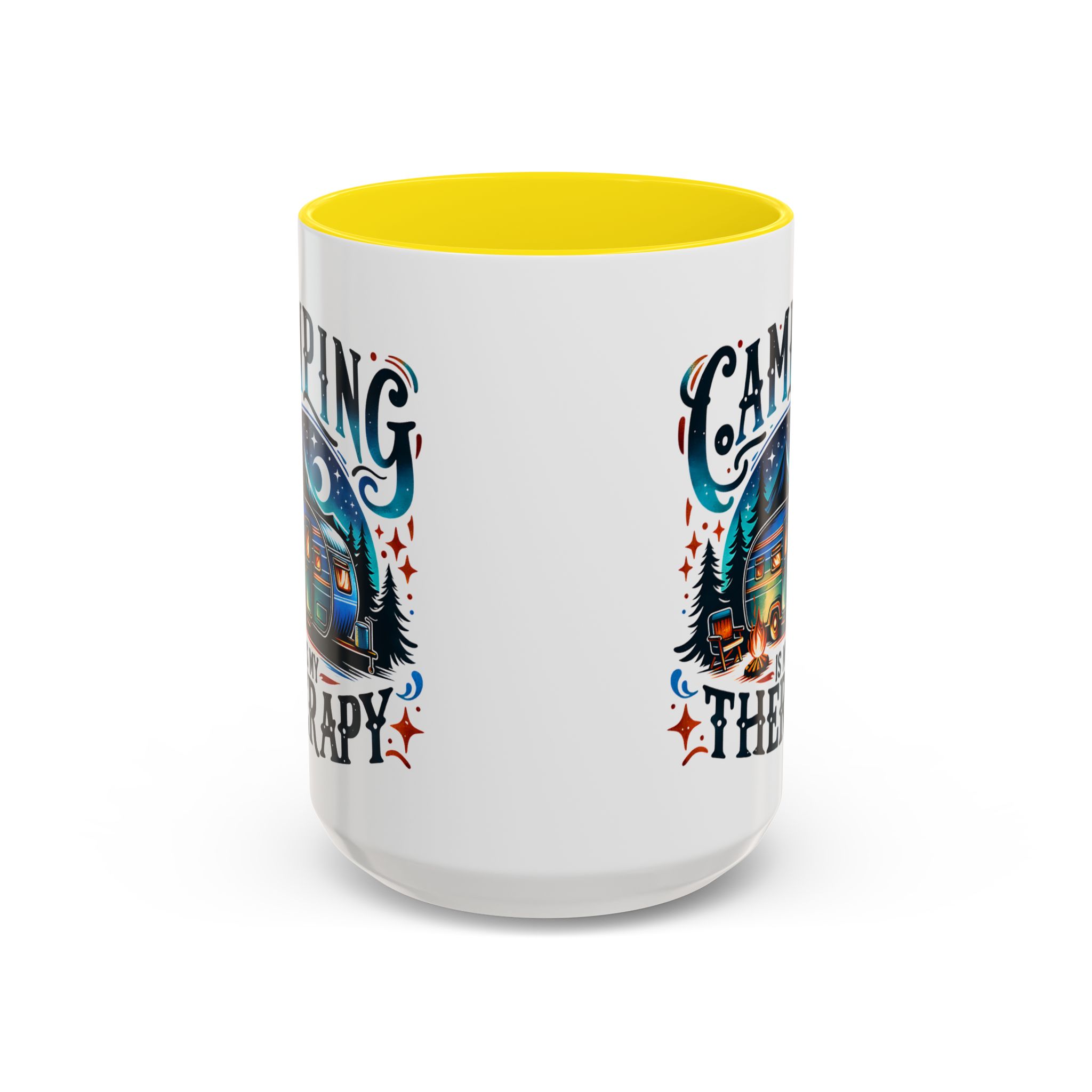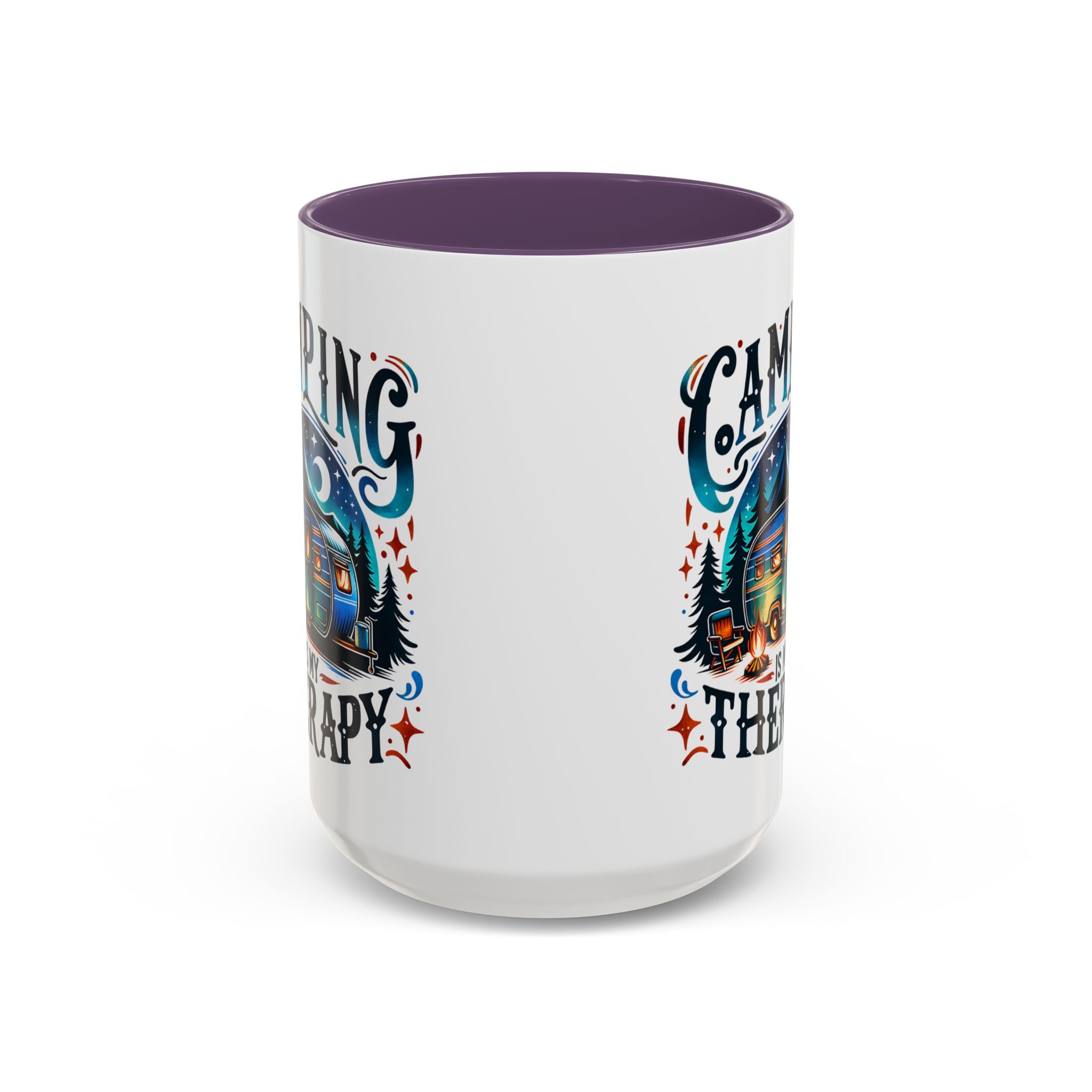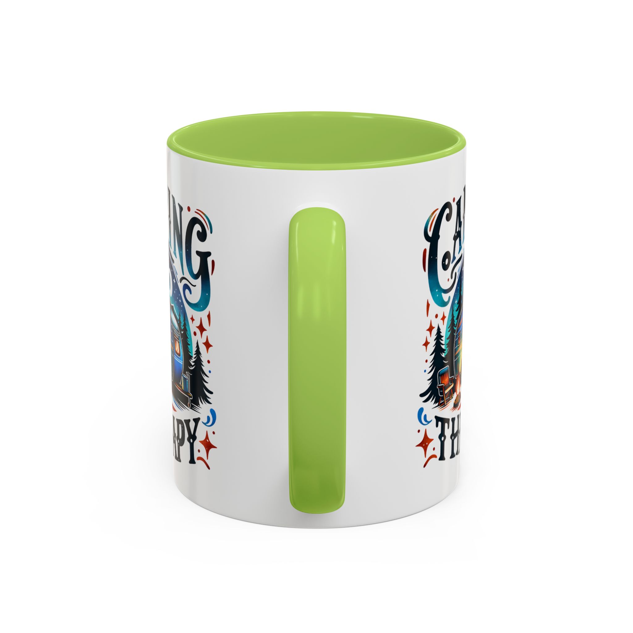 This ceramic accent mug brings a little campsite calm to every sip. The bright, detailed illustration — a glowing camper beneath a starlit sky with the words “Camping is my therapy” — feels like a warm evening around the fire. Smooth glossy white ceramic contrasts with the colored handle and interior, making the artwork pop. It’s sized for morning coffee or a long, slow tea break and stands up to daily use: microwave and dishwasher safe, lead- and BPA-free. Give someone (or yourself) a quiet reminder to slow down and breathe between trips and errands.
