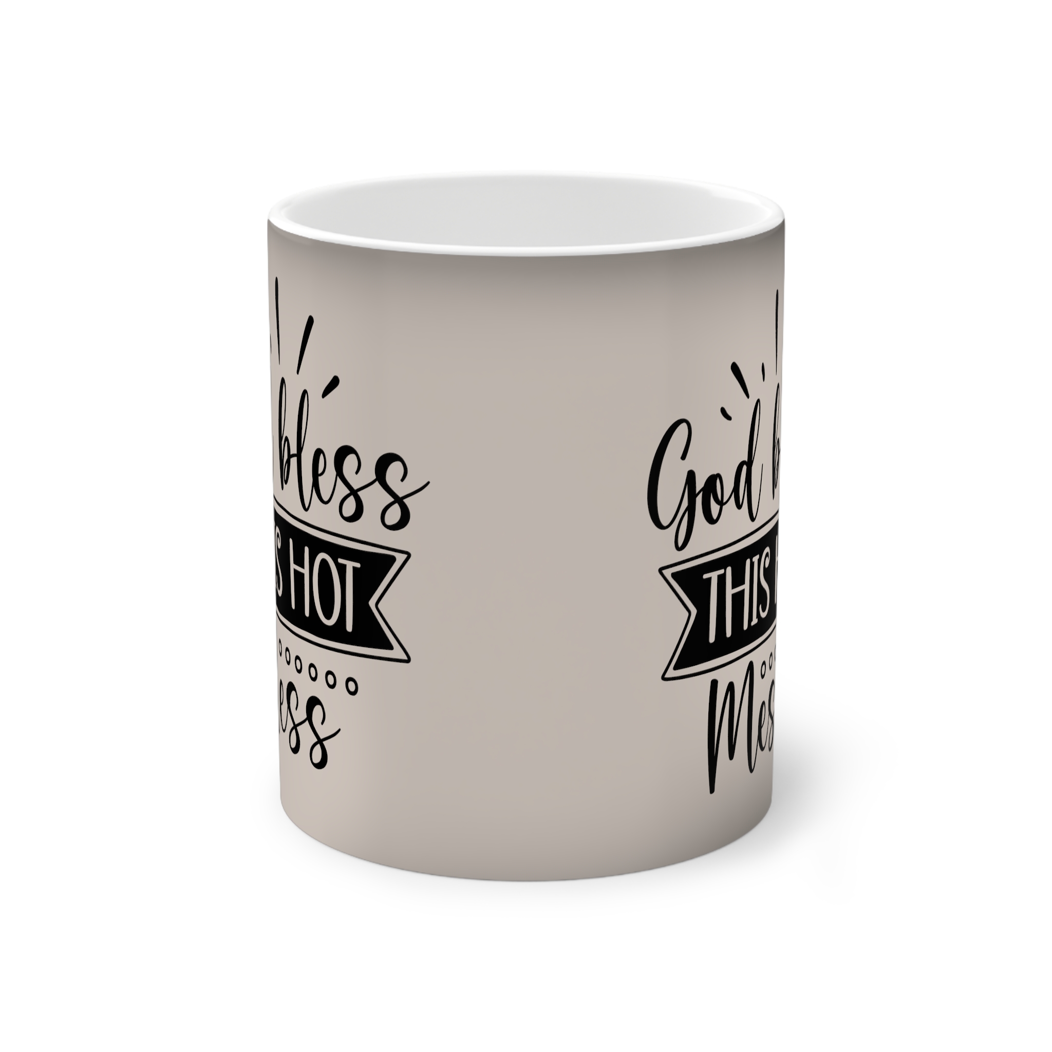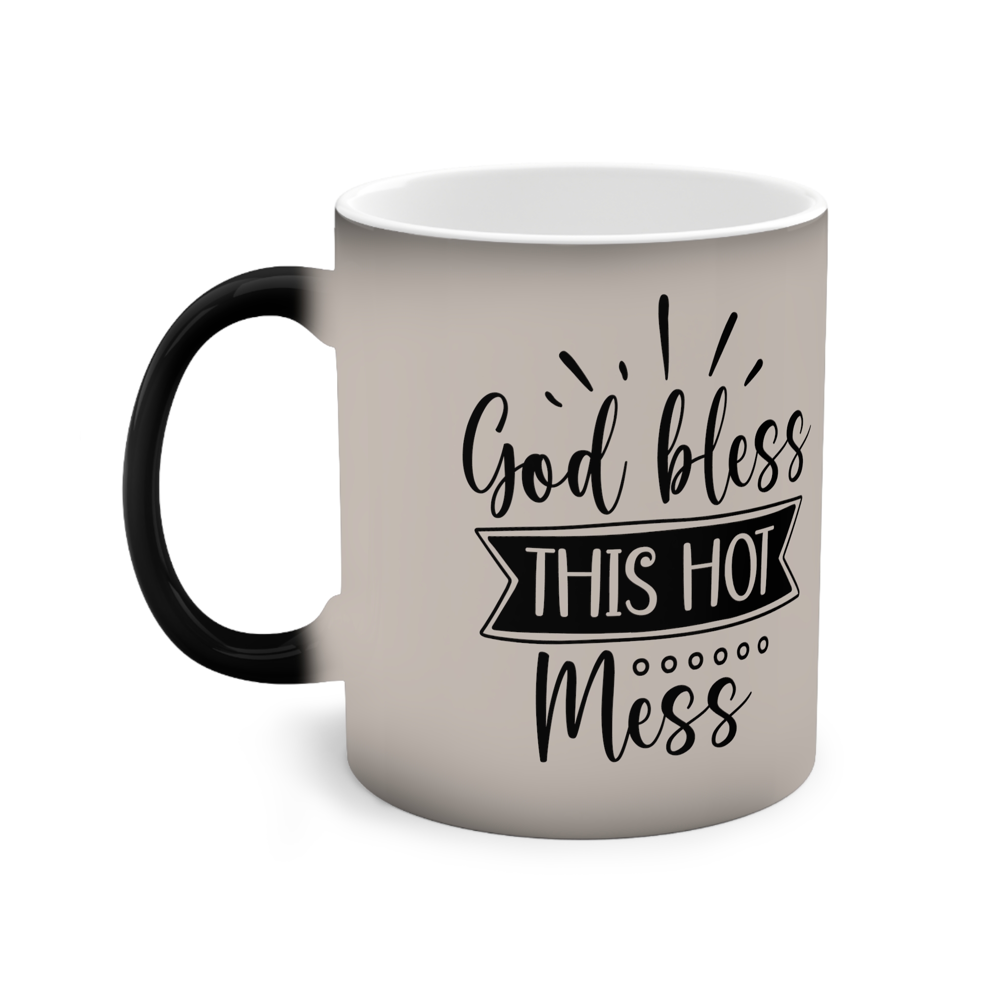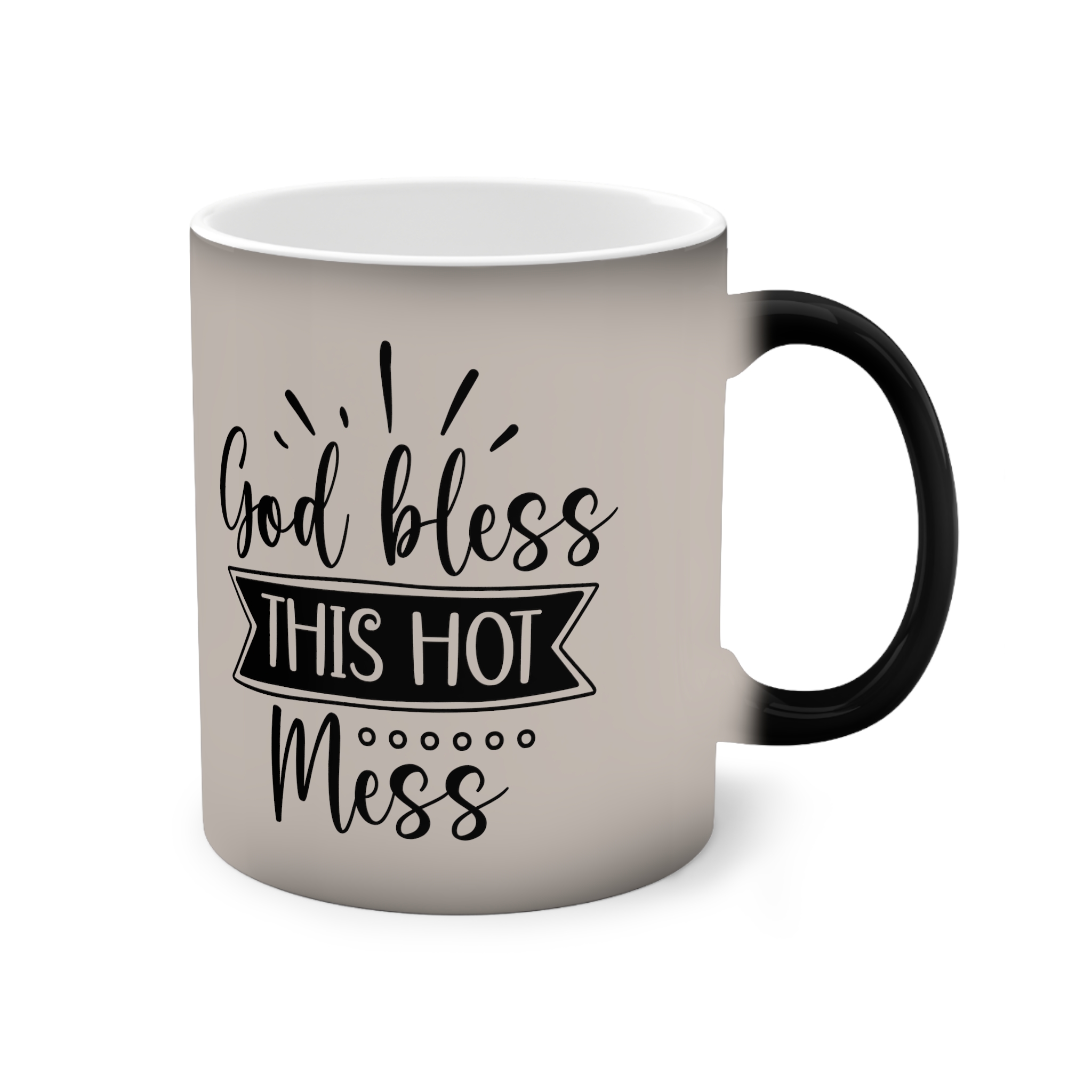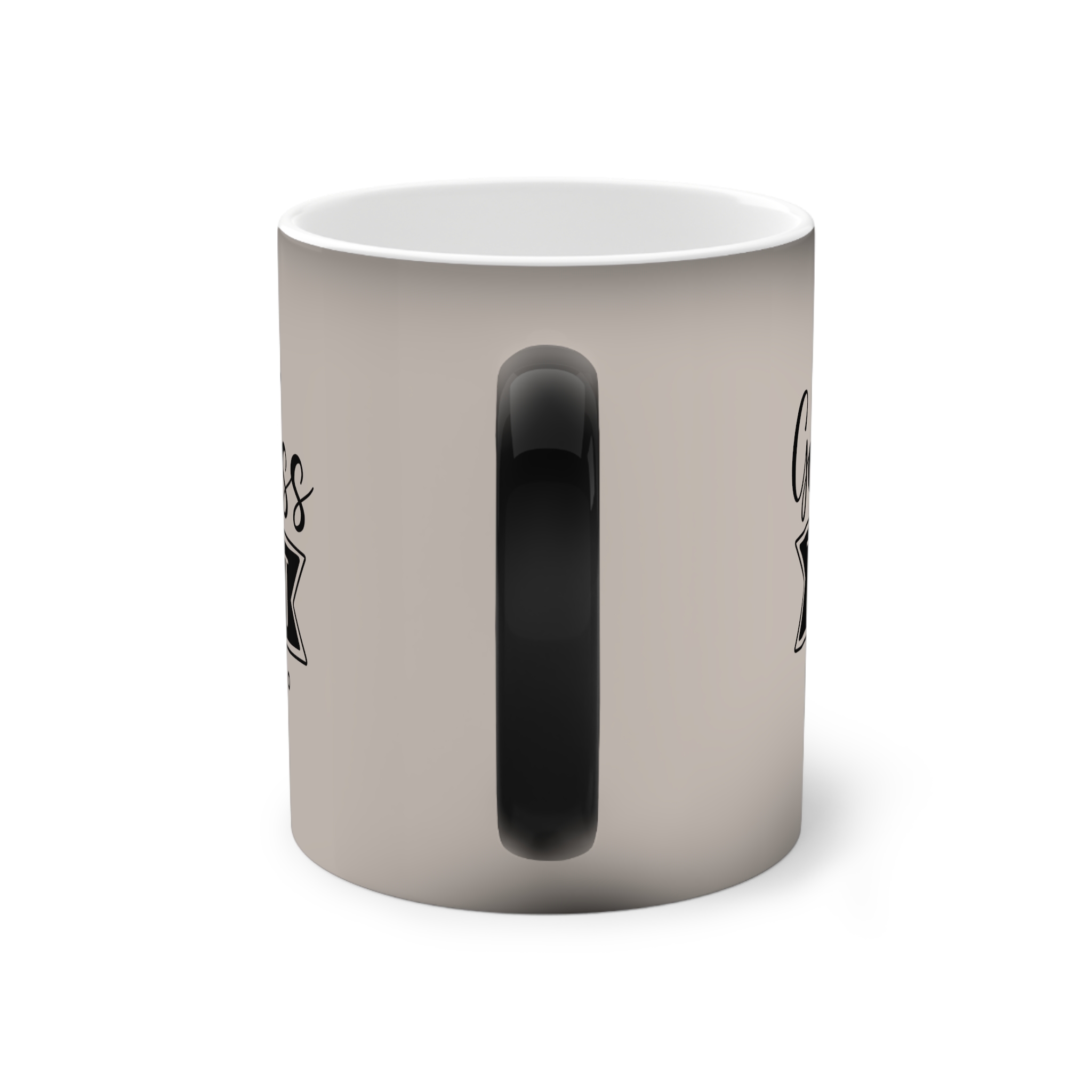 A heat-reactive 11oz ceramic mug that brings a quiet moment of surprise to morning coffee. The matte-beige exterior reveals a contrasting design as hot liquid warms the surface, turning understated tones into a playful message. The glossy interior and durable ceramic body feel substantial in the hand; a C-shaped black handle adds comfortable grip while the white interior brightens the brew. Made with vivid printing for crisp lines and compliant with EU REACH standards, this mug is meant for slow sips, shared smiles, and small, warm rituals (hand-wash only, not microwave-safe).