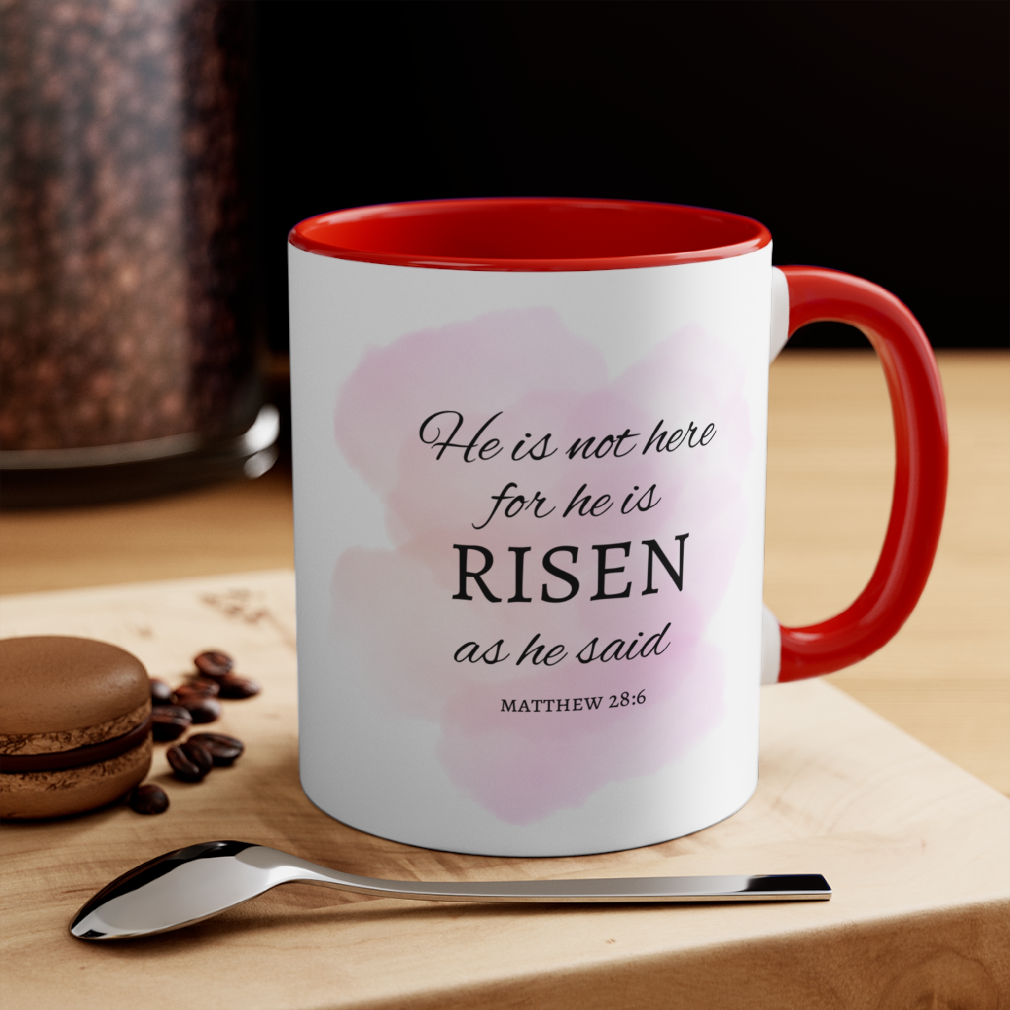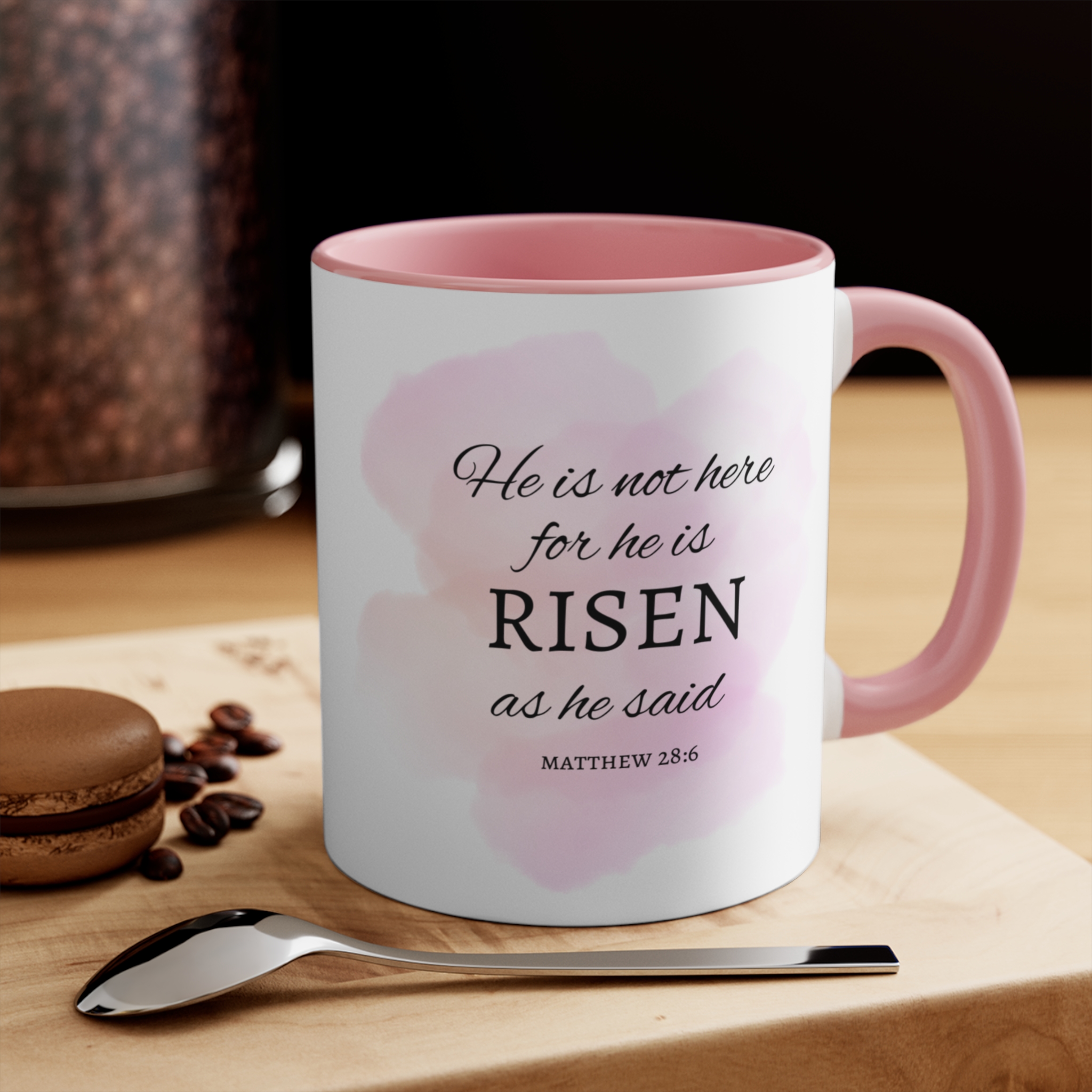 This ceramic accent mug brings a soft, uplifting touch to quiet mornings and reflective moments. A delicate floral cross blooms across a watercolor-pink backdrop, finished with a matching colored interior and handle that feels warm and gentle in the hand. The crisp ORCA-printed artwork keeps colors bright wash after wash, while the sturdy C-handle and rounded rim make each sip comfortable and steady. Whether used at the kitchen table, tucked beside a journal, or set on a desk, the mug adds a calm, tender presence to daily rituals and meaningful gatherings.